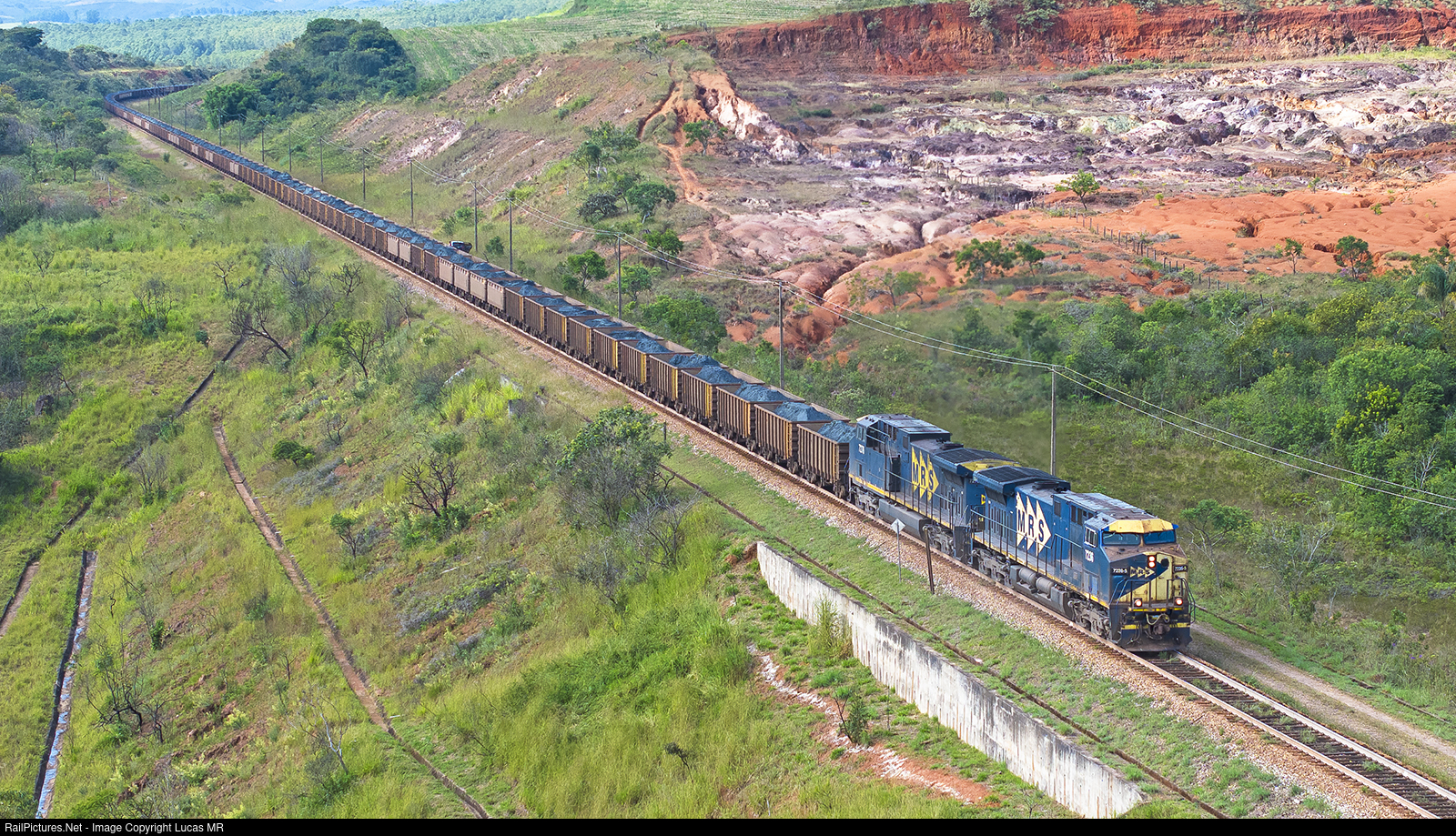 Southbound loaded ore train NAG0104 led by AC44i #7236 photographed between S.J. del Rei and Itutinga-MG