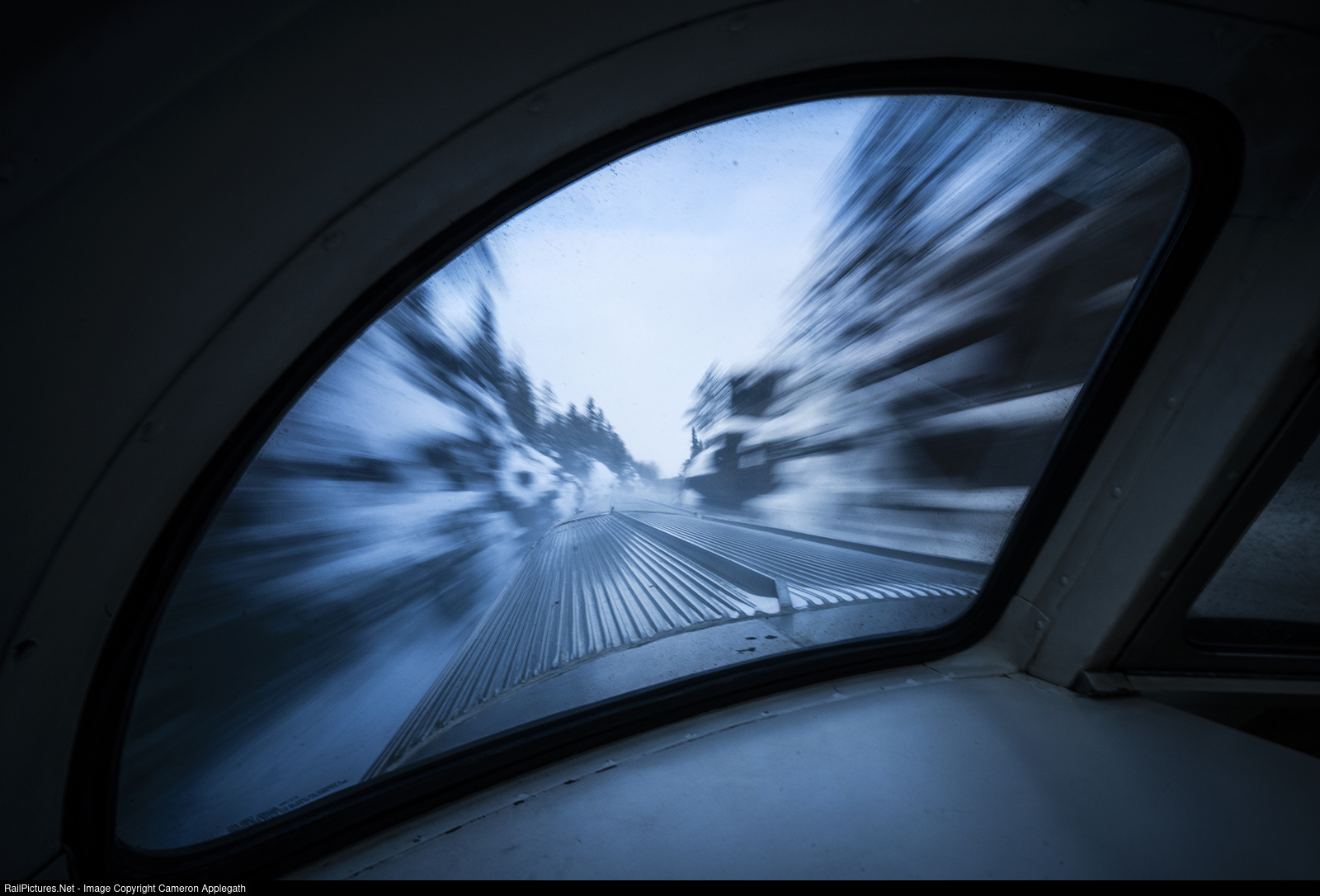 Charging through the Canadian shield near Canyon Lake on the legendary Canadian...seen from inside the skyline dome.