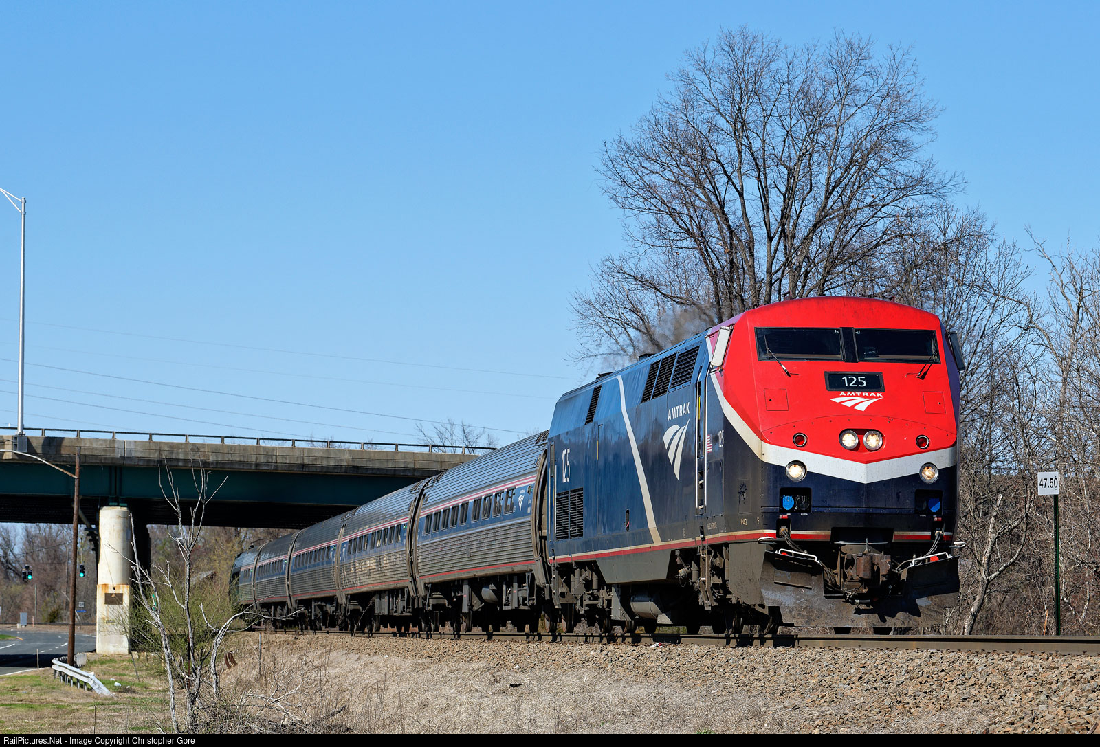 RailPictures.Net Photo: AMTK 125 Amtrak GE P42DC at Windsor Locks, Connecticut by Christopher Gore