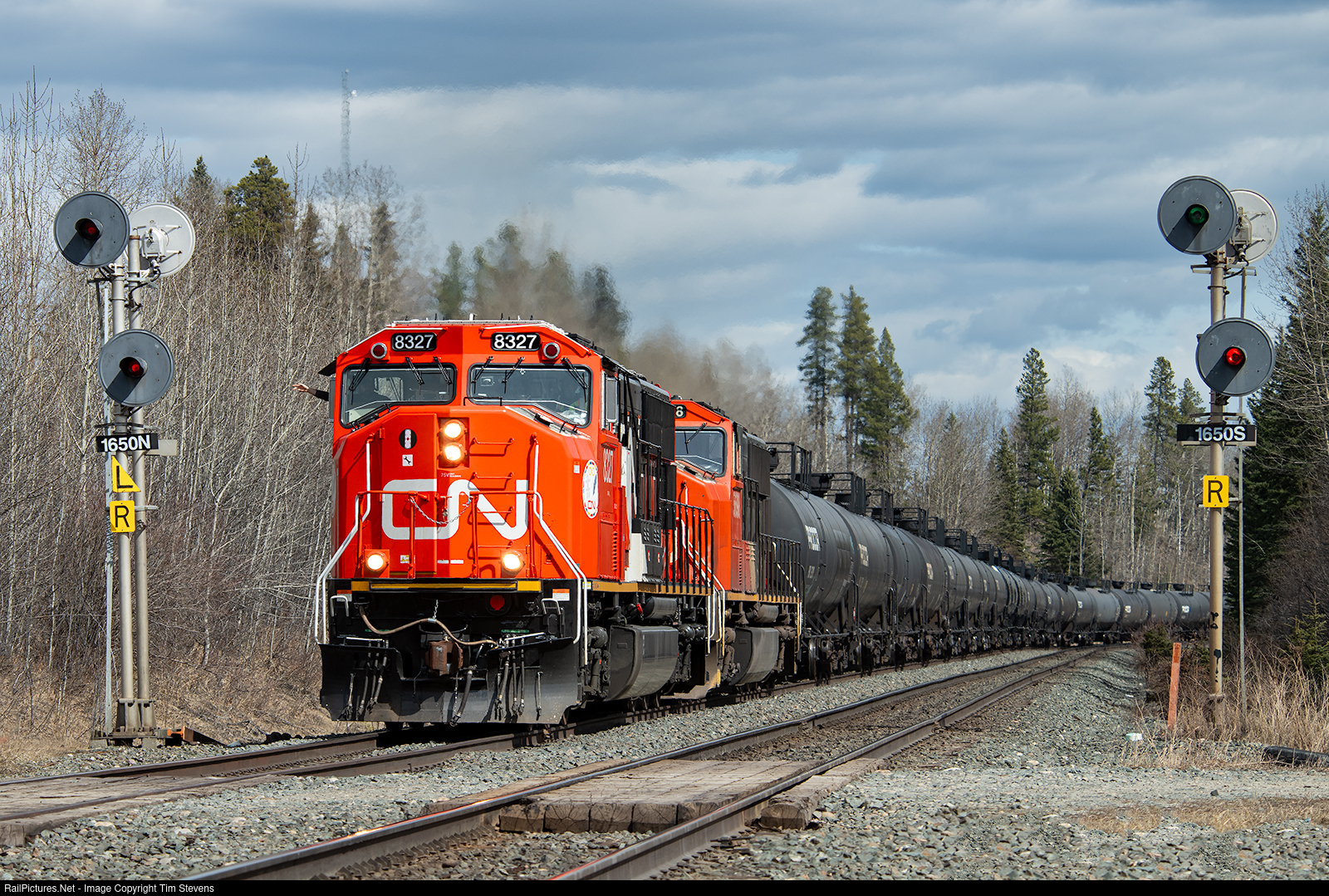 LPG loads for export at Prince Rupert split the signals at Mile 165 behind a pair of SD75s (one rebuilt, one not!).
