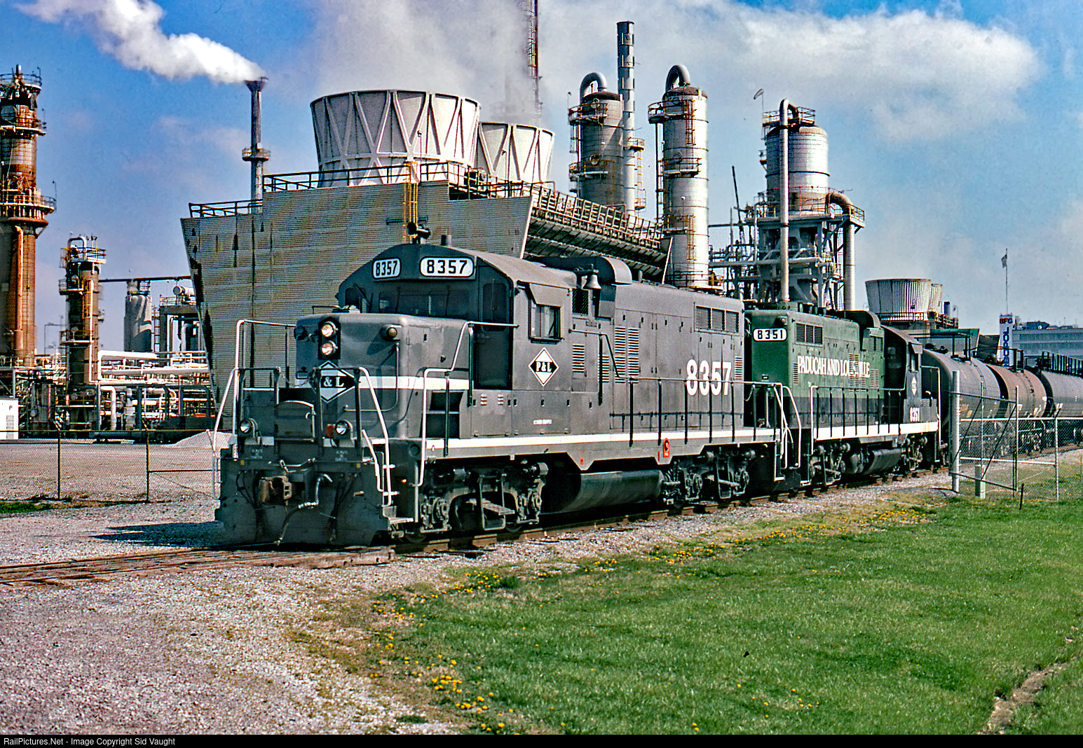 | Paducah must have done something right. The GP10s had a stellar history long after being retired by IC and many are still performing useful work to this day. Here a spin-off unit is switching a large chemical plant. Photo by unknown. From my collection. |