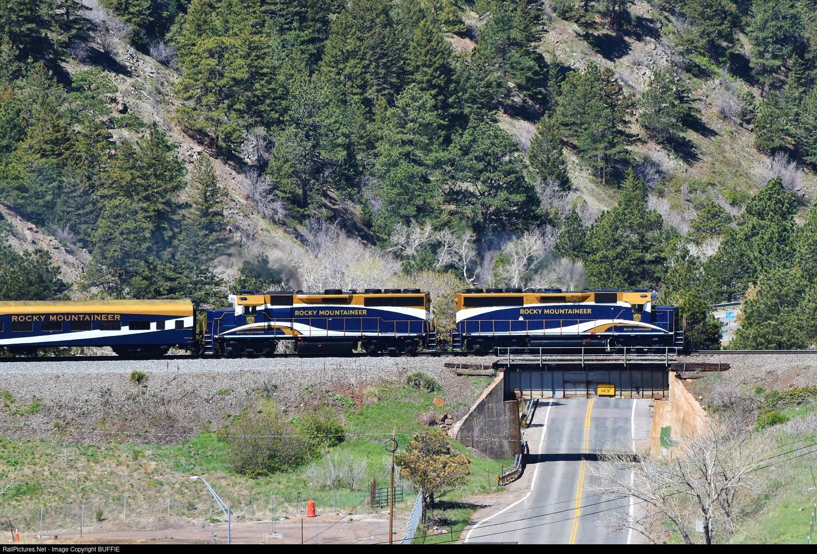 RailPictures.Net Photo: RMRX 8020 Rocky Mountaineer Railtours EMD GP40-3 at Coal Creek Canyon, Colorado by BUFFIE