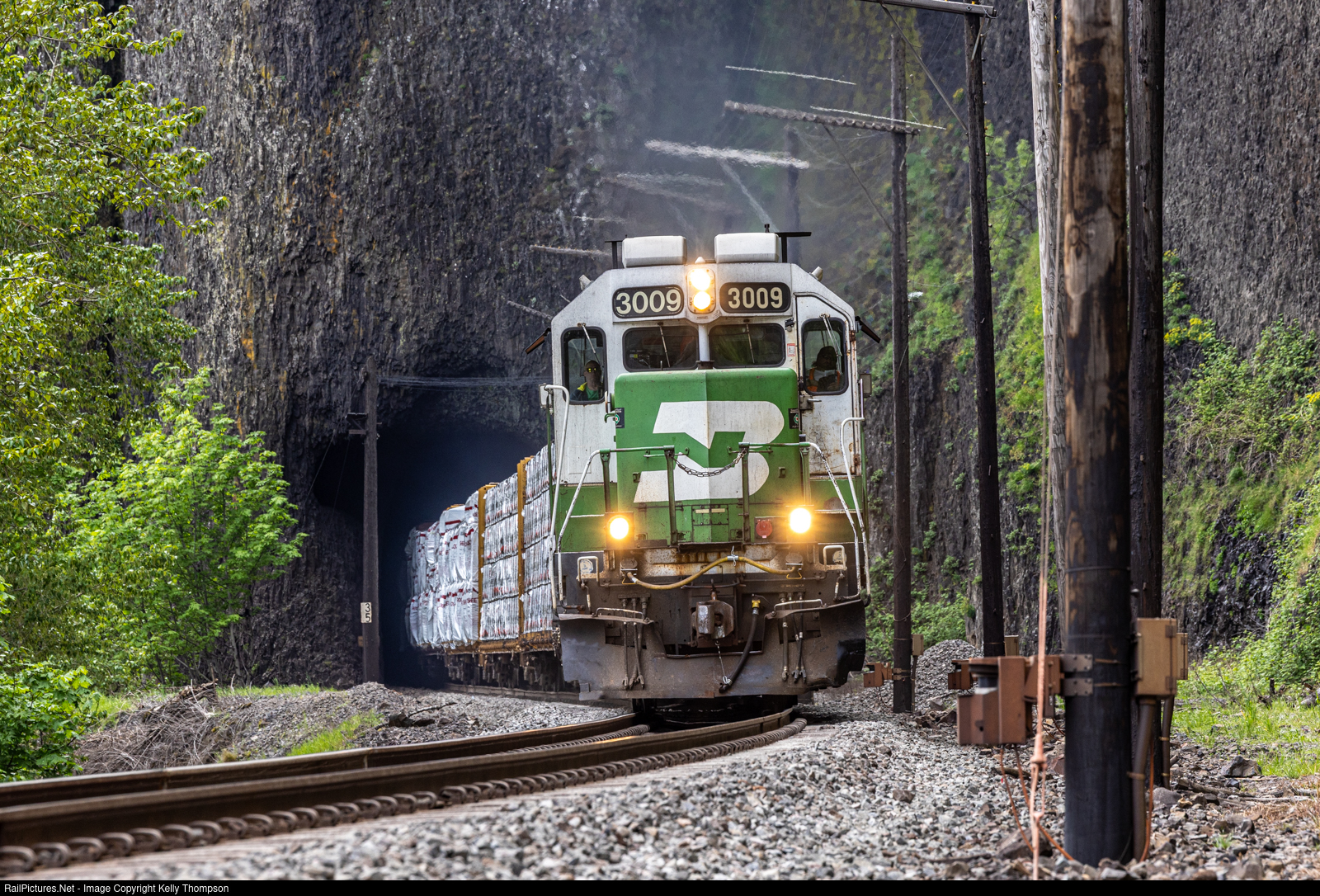| BNSF 3009 leads an eastbound H-VAWPAS out of Cape Horn tunnel as they boogie towards Pasco. Getting a BN leader through the Gorge has always been a goal of mine but living over 2,000 miles away made that seem pretty unrealistic. Talk about the right place at the right time! |