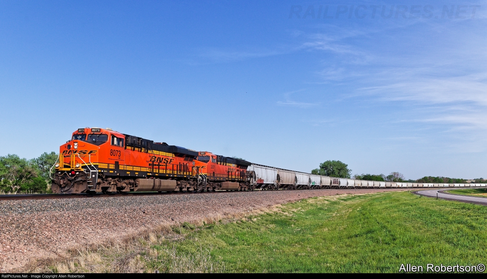 BNSF 8073 & 3801 lead a westbound grain train.