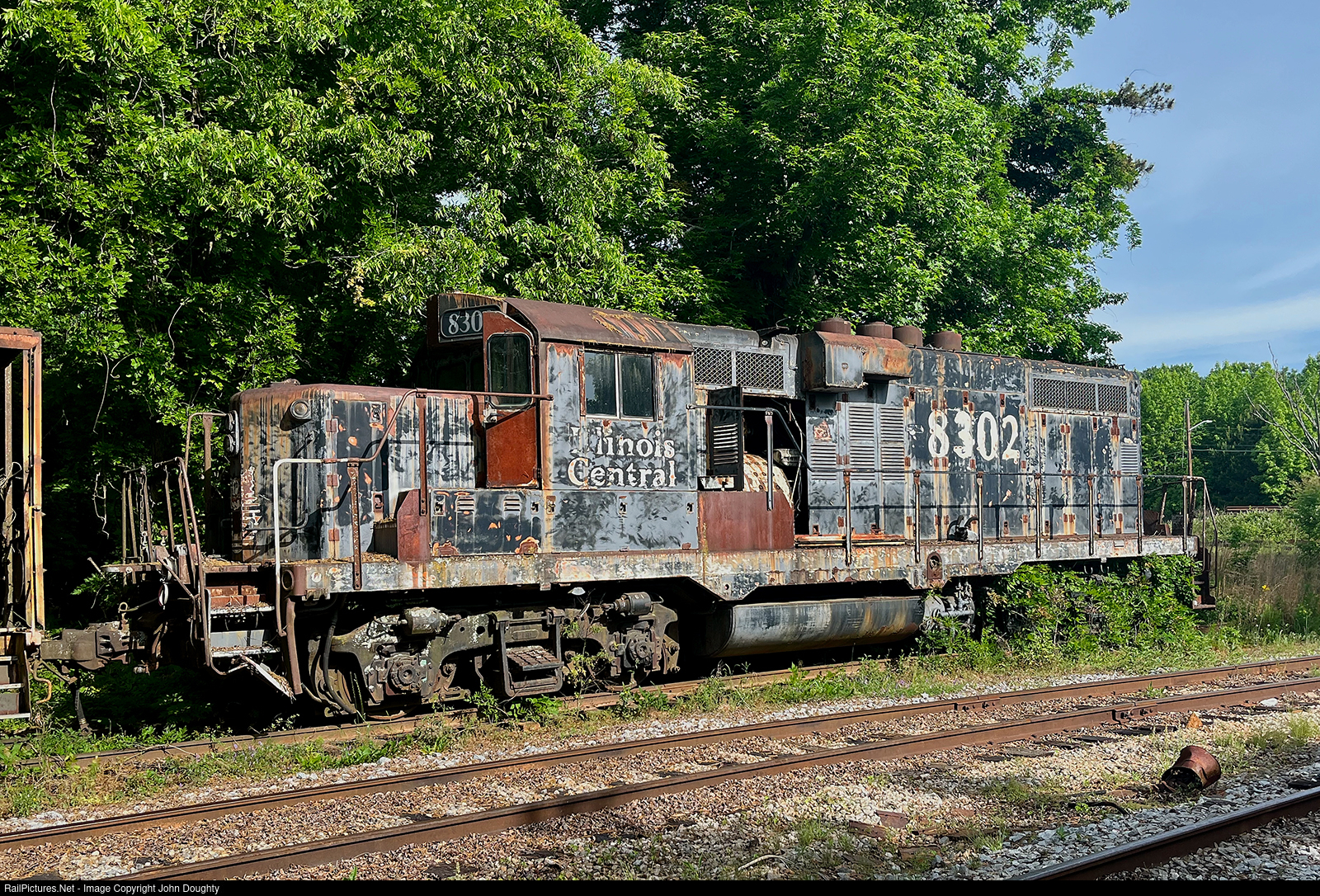 | Illinois Central 8302 has seen better days as it slowly rusts away and is gradually overtaken by trees and brush at the Great Walton Railroad in Social Circle, Georgia. |