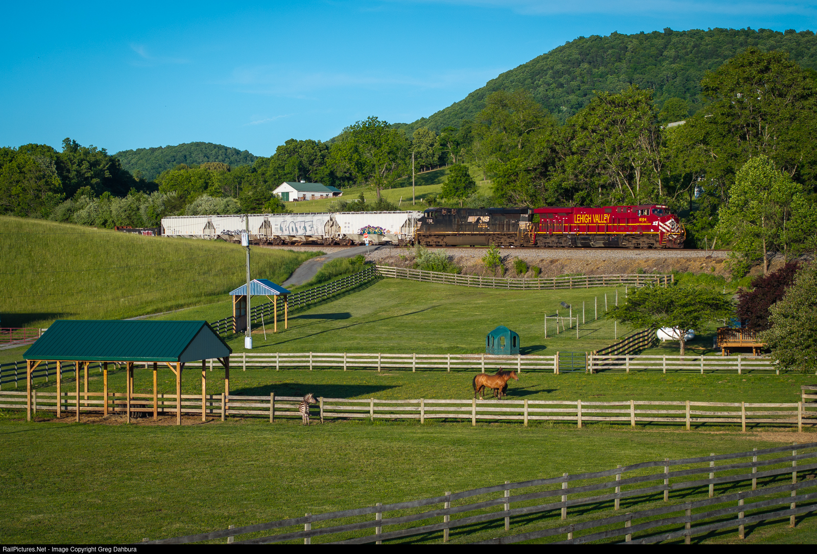 | A young zebra stares at 15T while the horses appear unphased on a beautiful May evening with the "Lehigh Valley" heritage unit leading. Was certainty not expecting to see this little guy in the Virginia countryside! |