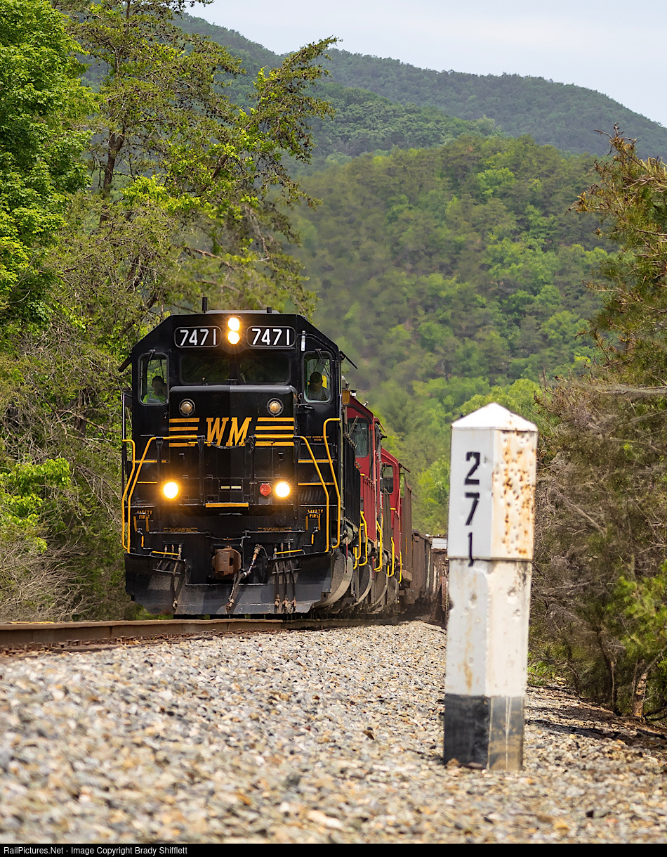 | Whining dynamic brakes bounce off the mountain ridges and echo through rural Alleghany County as engineer Ian Whaley holds back his train on the descent through Crane, Copeland and Griffith before the final climb up to the intermediate at Nicelytown before dropping down to JD Cabin and up the Selma lead into the yard at Clifton Forge. |