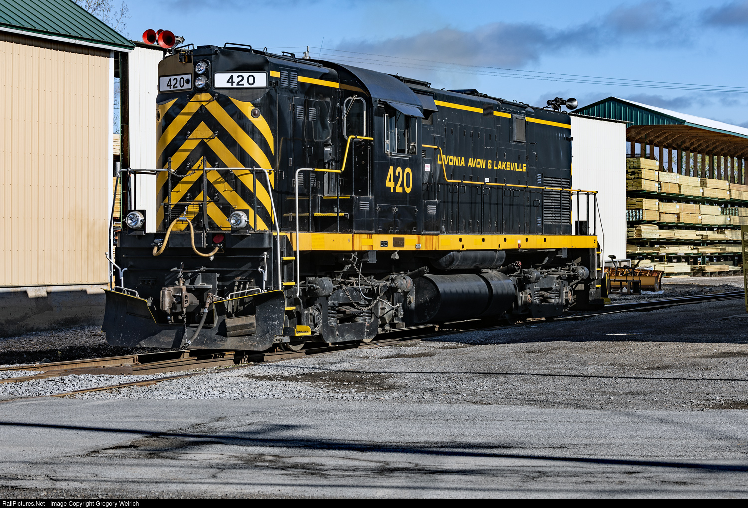 LA&L 420 running around some cars at Lakeville. The 420 was built as Long Island RR 200 in December, 1963. It is set up for long hood forward operation.