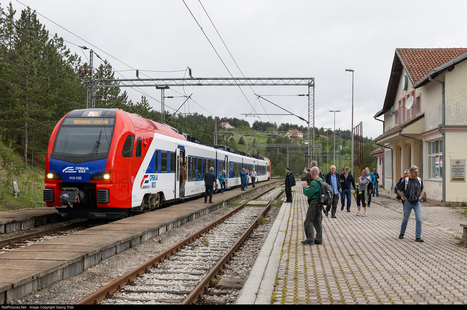 A special train with the newly delivered “Flirt” 413 # 135/136 from the Serbian railroad company Železnice Srbije ran on a section of the main line from Bar to Belgrade in Serbia for the SERVRAIL travel group from Switzerland. The train was delivered in 2024, built at the Stadler plant in Siedlce/Poland, and has only covered around 20,000 kilometers. Železnice Srbije already received 21 of these trains in 2014/2015, and a repeat order of 18 units is now being delivered. The special train arrived at Branešci after a 70 kilometer trip from Prijepolje Teretna. A large part of this section can only be traveled at a maximum speed of 30 km/h due to the poor condition of the track. The journey of 70 kilometers took a good 2 1/2 hours (with two photo stops).