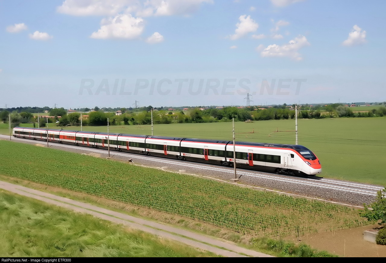 EC service 31 Zurich-Bologna, operated by RABe 501.005 of Swiss Railways, passes near Varignana, on the Bologna-Ancona line.