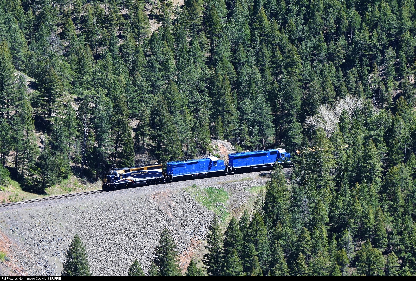RailPictures.Net Photo: RMRX 8021 Rocky Mountaineer Railtours EMD GP40-3 at South Draw, Colorado by BUFFIE