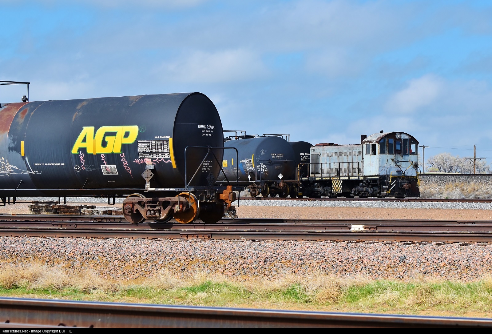 Hudson Terminal Railroad's veteran Alco S1 moves a cut of oil can in the large yard in Hudson, Colorado.