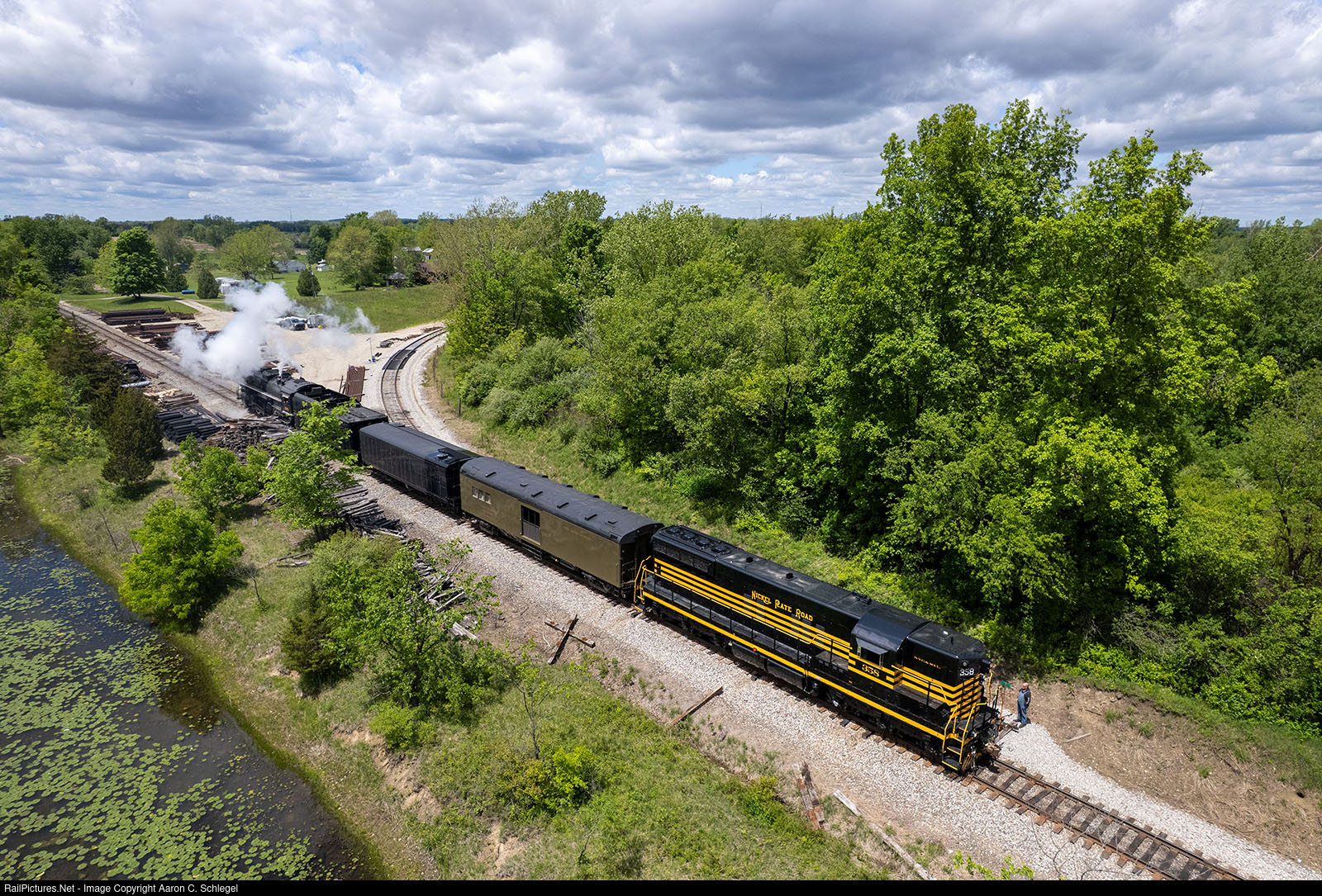 The NKP 358 leads the NKP 765 East to Steubenville from the Shop at Hudson. The train will head up the old NYC to Pleasant Lake for an afternoon of Ice-Cream Train Rides.