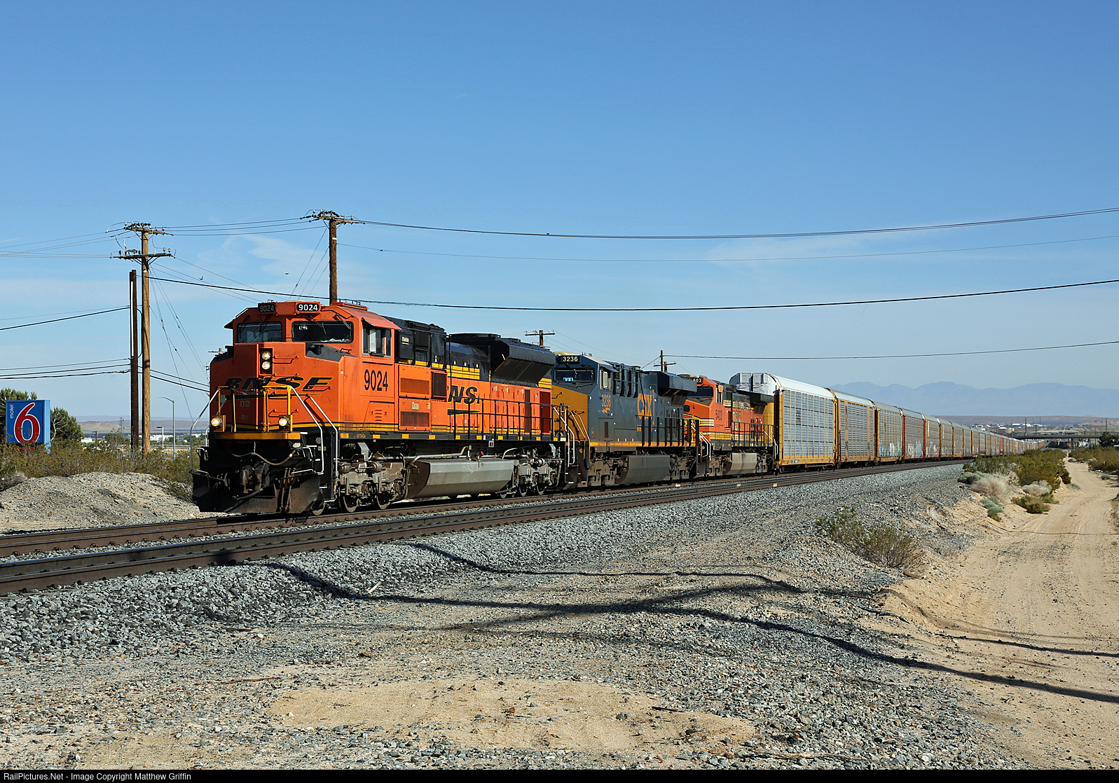 BNSF 9024 leads a Northbound Vehicle train out of Mojave in the late afternoon.