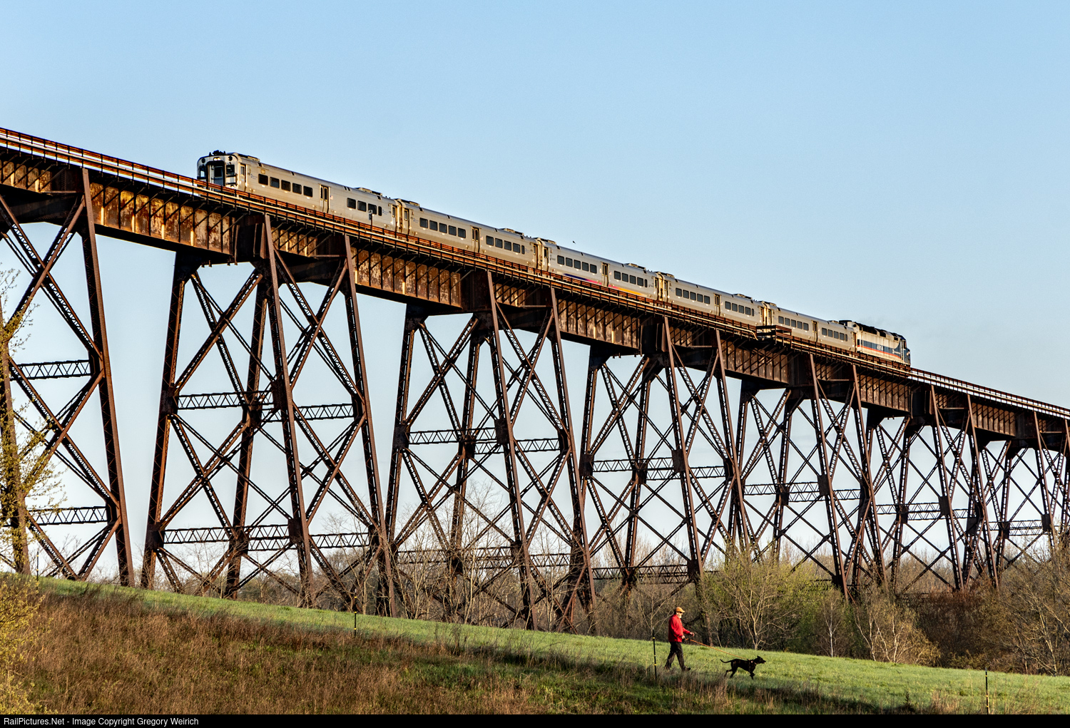 | Metro North train 54 crosses 3200 foot long Moodna Viaduct. The viaduct was completed in 1909 and was part of Erie railroad's Graham line freight bypass. It's used by Metro North and Norfolk Southern. |