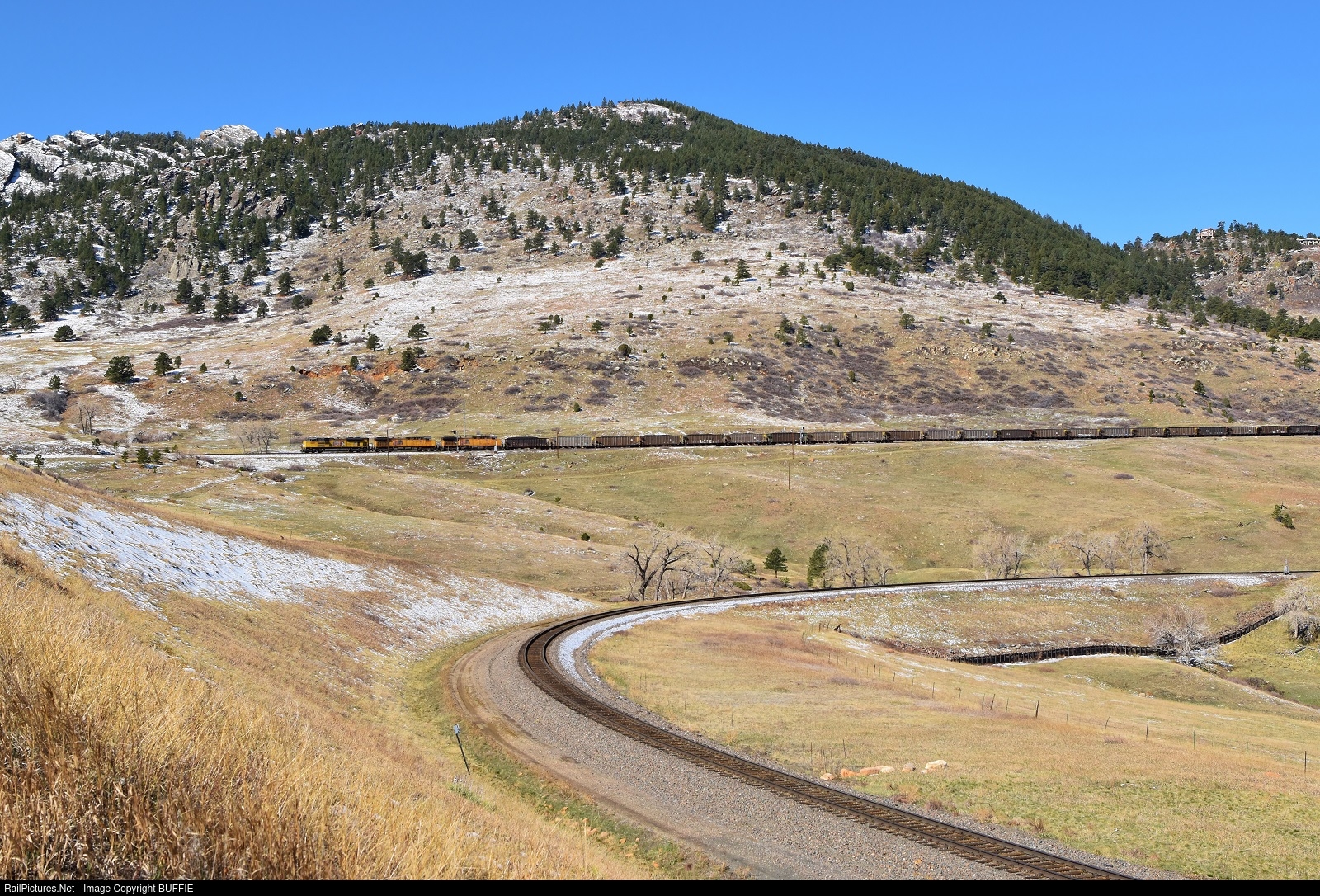 UP 8697 (SD70ACe) leads a coal train down the 2% grade at Eisele, Colorado as it runs towards Denver on the Moffat Tunnel Sub.