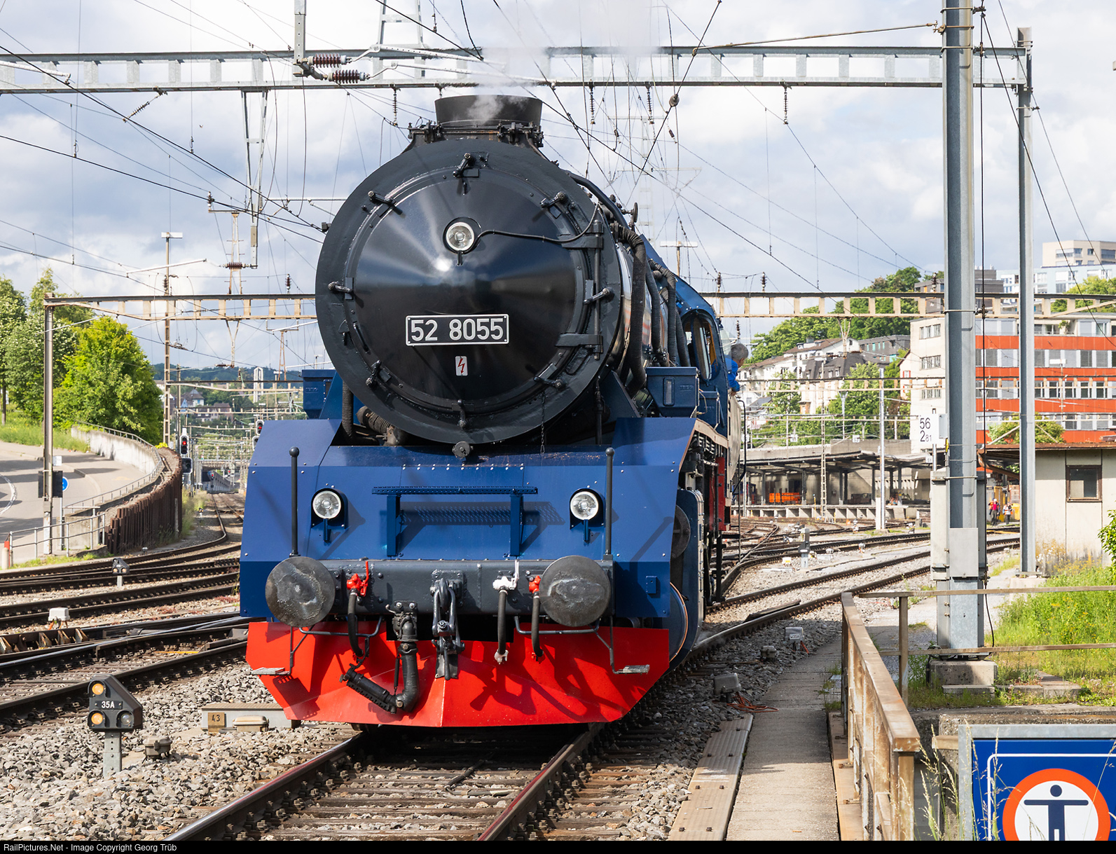 In the night 19/20 January 2023 there was a fire in the locomotive depot of the SBB in Schaffhausen. The building has been leased for many years to the company DLM (Dampflokomotiv- und Maschinenfabrik), which has a total of 4 steam locomotives stored there. In addition to three fireless 3-axle steamlocomotives, the large 2-10-0 locomotive 52 # 8055, which had been converted to light oil firing and extensively modernized by DLM, was also heavily damaged. On February 22, 2023 the locomotive was transported from Schaffhausen via Bülach-Winterthur to the Stauffer company in Frauenfeld. The restoration of 52 # 8055 has now been completed and the locomotive has returned to Schaffhausen. The former Deutsche Reichsbahn 52.80 steamlocomotive is moving back to her shed in Schaffhausen, with Roger Waller of the DLM in the cab.