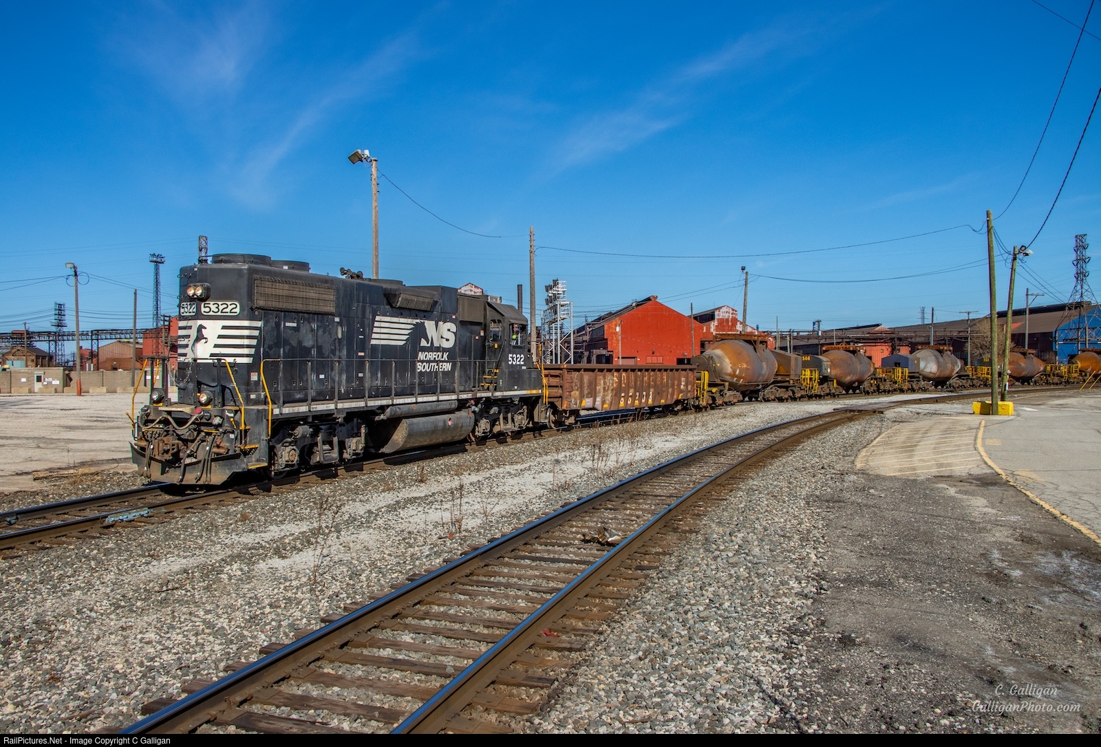 | Norfolk Southern 5322 leads the loaded Bottle Train from the IHB Lakefront across the Chicago Line and back onto the IHB for transport to Cleveland Cliffs in Riverdale, IL. |