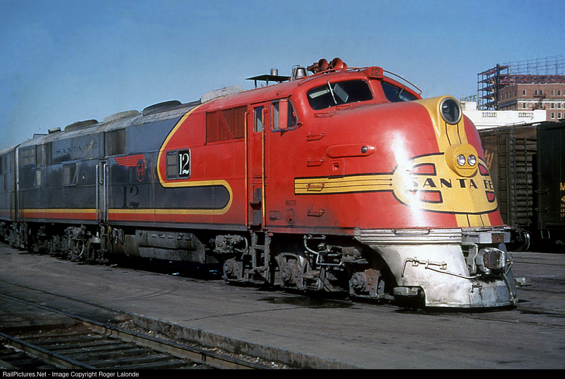 In the late afternoon of a long career, E6 12 was still handling Nos. 11-12 between Kansas City and Dallas in December 1964. 12 had left EMC in April 1940 and worked until it was damaged in a July 1965 accident and its remains were then sold to EMD in 1966 for credit on a new 5000-class SD40. Photo by Dick Kuelbs, from my collection.