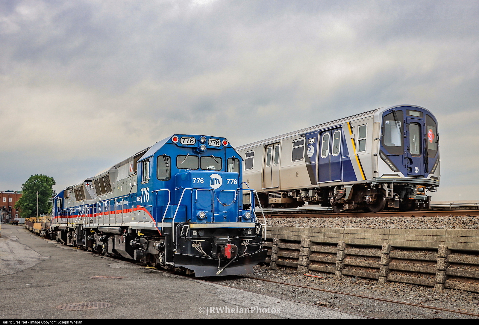 Leading a Tottenville bound express, Kawasaki R211S 159 passes by Brookville BL-20G 776 in the Clifton Yard.