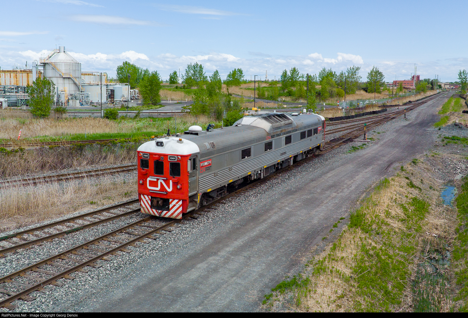 | CN's Track Evaluation Systems RDC-1 no. 1501 was out measuring the tracks of the Longue-Pointe spur, off CN's Saint-Laurent subdivision in eastern Montreal. |