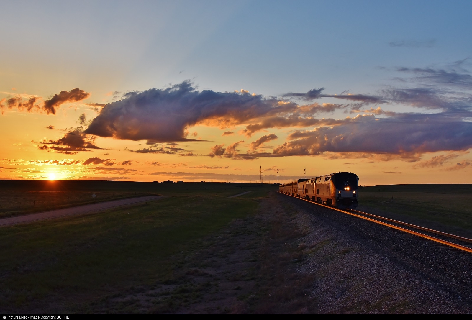 | The California Zephyr runs through Akron, Colorado at sunrise as it heads towards Denver on the Brush Sub.