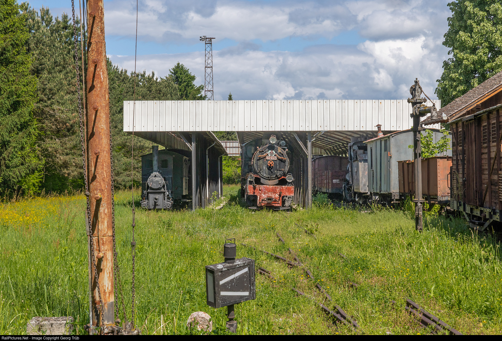 Narrow gauge railway museum in Pozega, Serbia, near the station. In the middle 76 cm gauge large fourcylinder "Mallet" 2-6-6-0 92 # 043, built by Henschel/Germany in 1922.