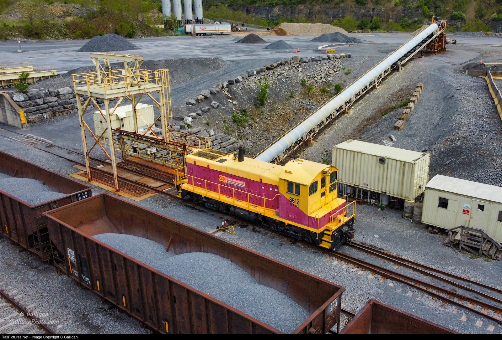 | Glenn O. Hawbaker uses a single EMD SW8 at their Pleasant Gap Facility outside of State College. The stone is shipped by rail from the BPRR in Driftwood via NS and NBER and unloaded for use in heavy construction in central Pennsylvania. |