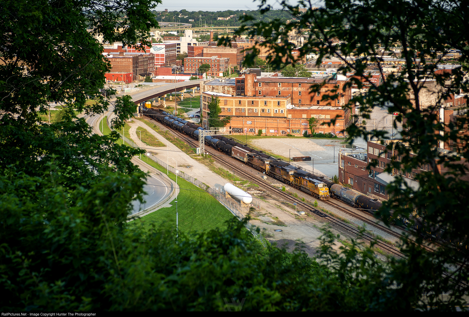 | On the sunny morning of Sunday, June 1, 2025, Union Pacific crude oil train OWUSJ2 makes its way through the West Bottoms area of Kansas City, MO.
