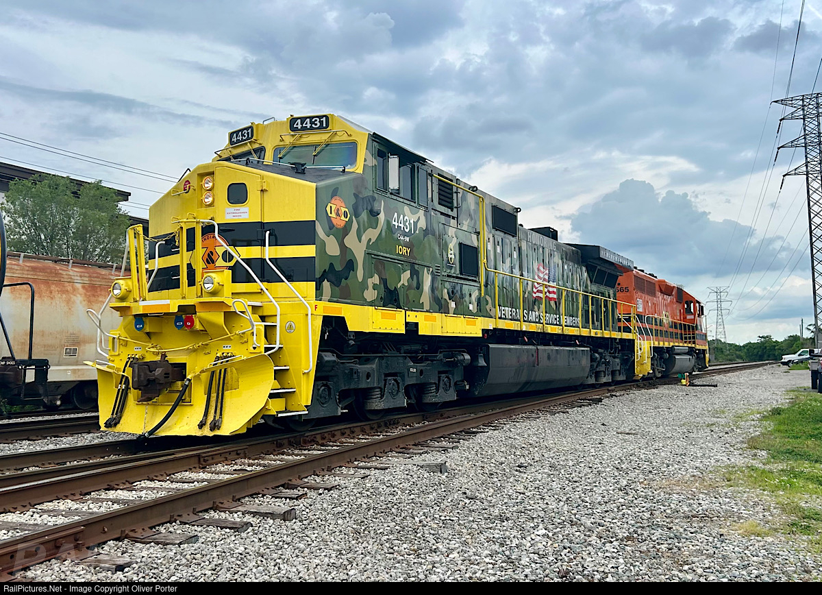 | IORY Honoring Vets First in the database of this Special Scheme, idling on assignment for evening yard switching. Recently painted on an ex-BNSF Dash 9. |