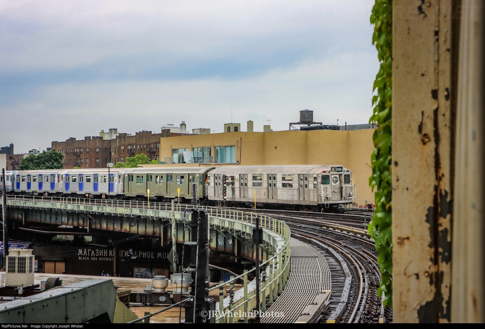 Comprised of R-11 Car 8013, R-16 Car 6387, R-32 Cars 3360 & 3361, and R-10 Cars, 3189 & 3184, the Train of Many Metals rolls downtown towards Brighton Beach during the Parade of Trains.