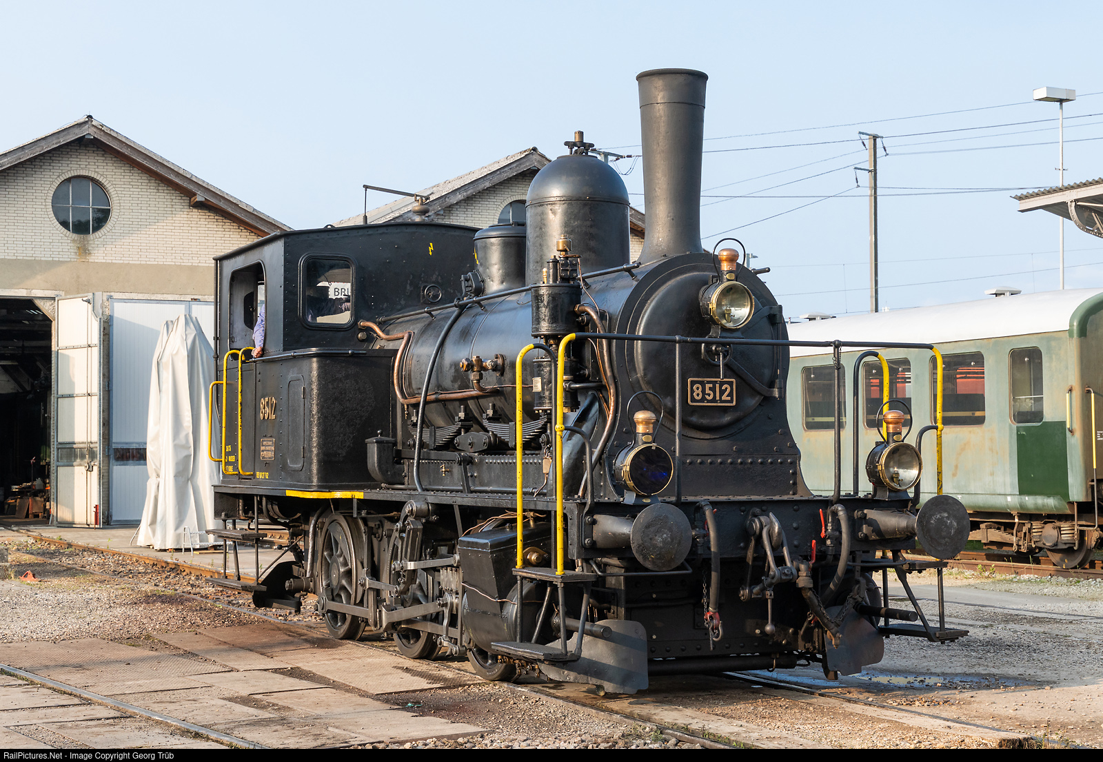 | 0-6-0 T shunter "Tigerli" (little tiger) E 3/3 # 8512 of the steam group Zürich (VDZ) during the open doors days 2025 in the Bahnpark Brugg AG. Built in 1911 by the SLM and operational for the SBB till 1965. From 1982 to 1999 in the swiss museum of transport Lucerne (VHS). From 1999 to 2021 with SBB Historic in St-Maurice. Made operational and owned by steam group Zürich (VDZ) and based in Brugg AG. |