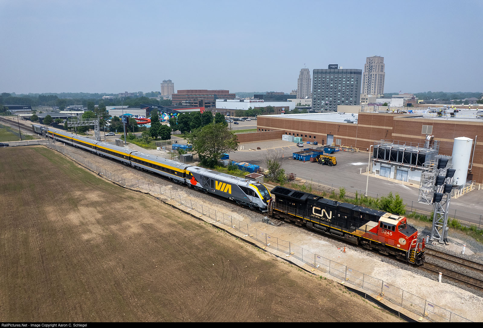 | P276 rolls thru Battle Creek with one of the final Siemens Venture trainsets for VIA Rail Canada. This is the Third to last set for the order. The Tail end of this train also has an EC-42 from the Siemens plant for EXO Montreal. |
