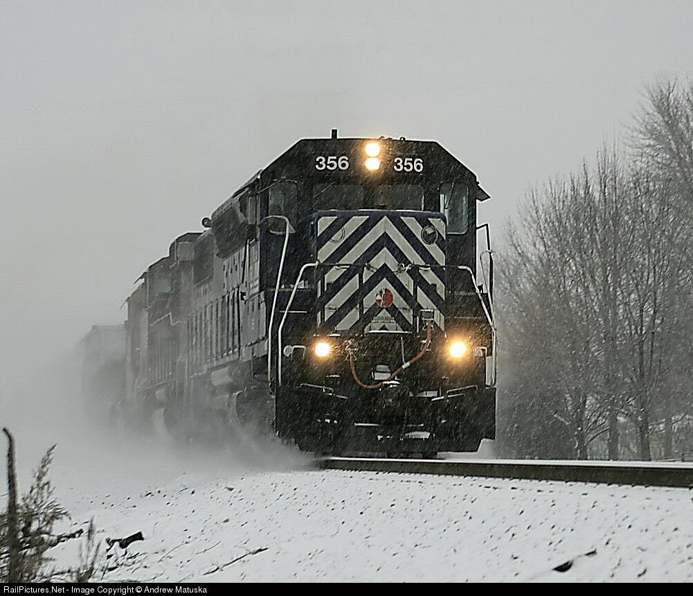 MRL 356 leads a BNSF GP60M and a BNSF SD40-2 in this first snow of the season. Merry Christmas!