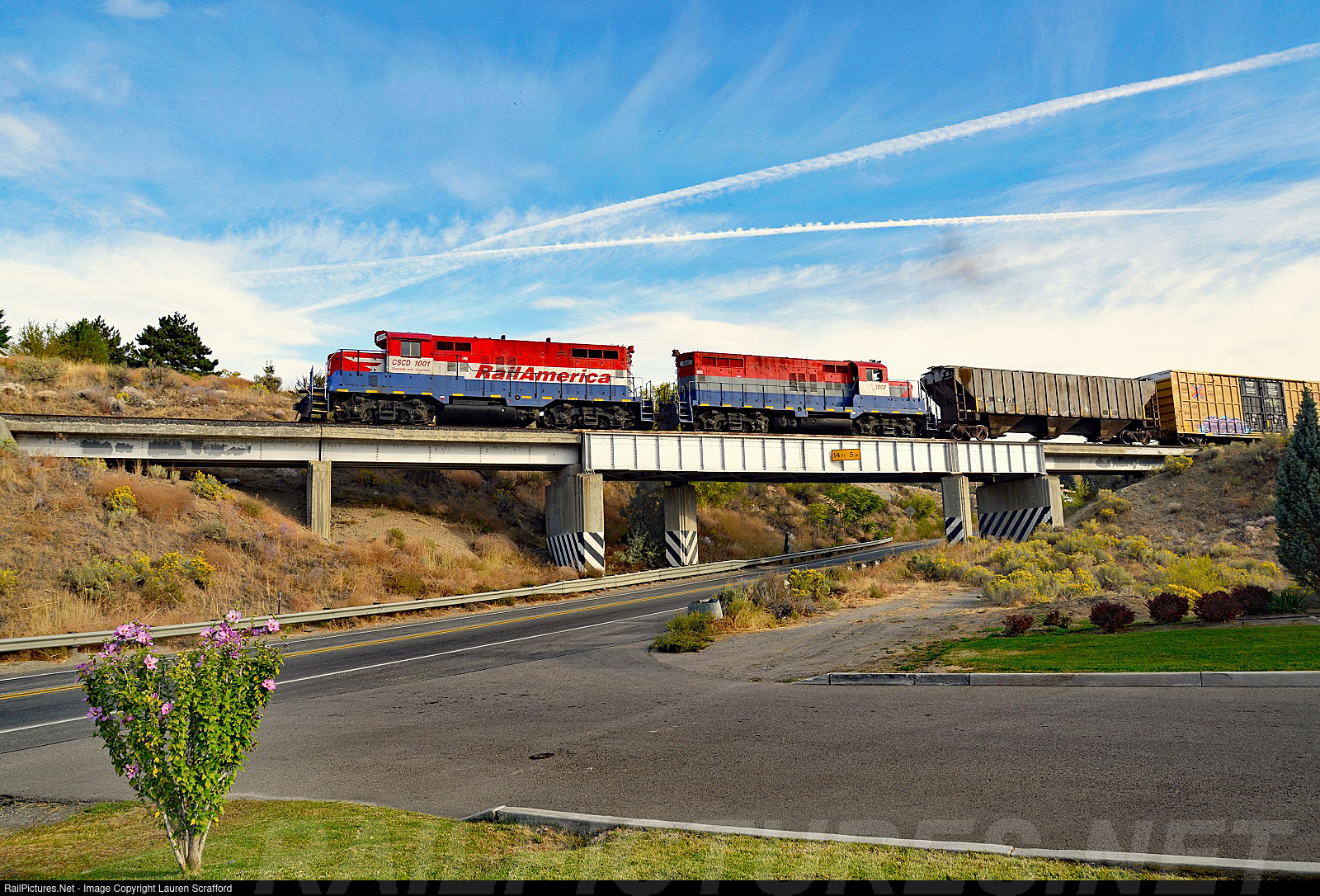 Cascade and Columbia River 1001 & 1002 work downgrade into Brewster, WA on September 21, 2018 with a mixed freight for interchange with the BNSF in Wenatchee, WA later this day. Both units are rebuilt GP10's which were built for the New York Central as GP9's and went to Conrail.