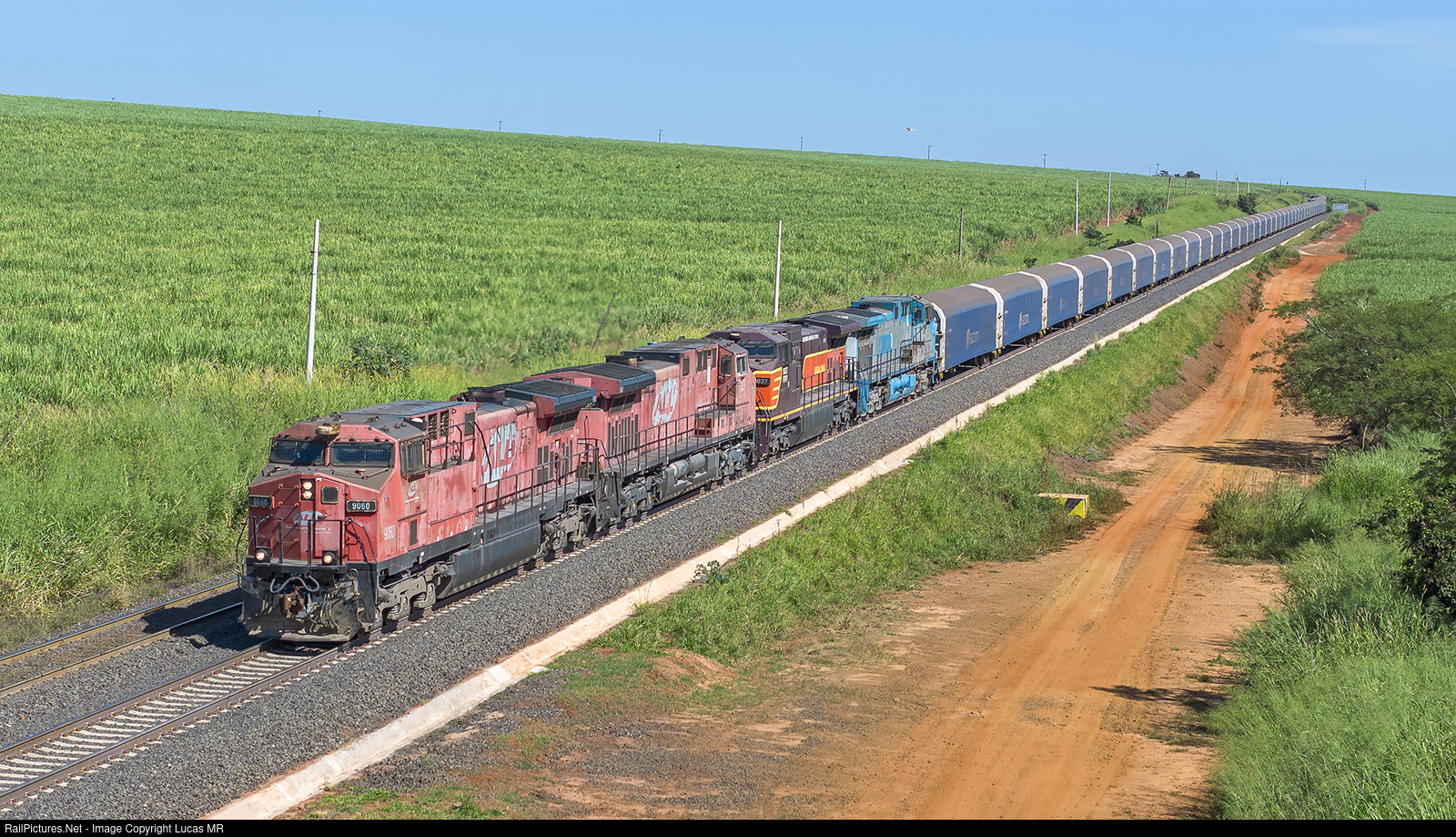 | Northbound empty L53, led by AC44i #9060, photographed at the grade ok Km 234, between Tamoio and Chibarro. |