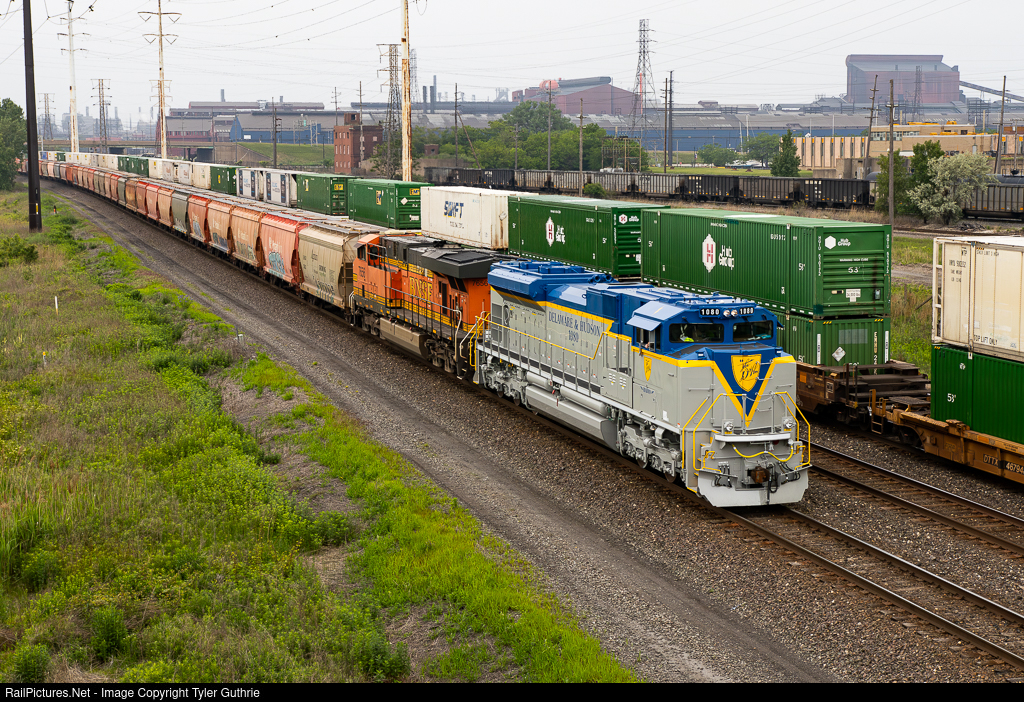 The newest NS heritage unit, honoring the Delaware and Hudson, leads its first train after the paint booth. 34J is seen here departing the IHB and entering the NS Chicago Line in the shadow of former Arcelor Mittal.