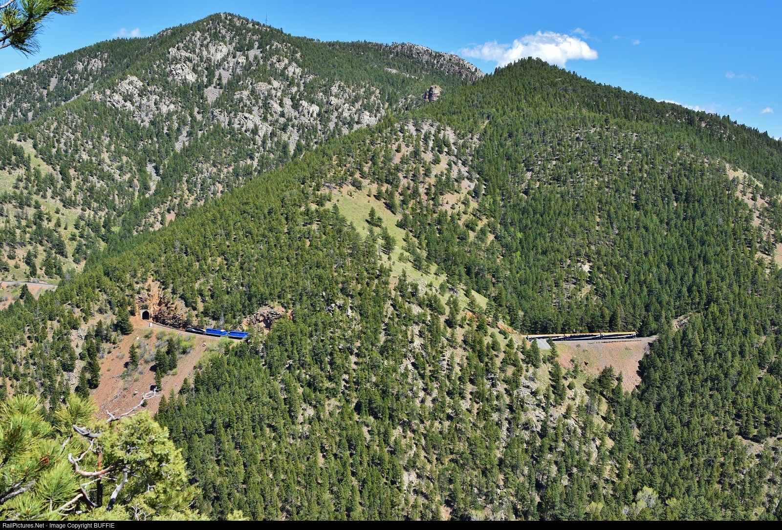 Rocky Mountaineer's 8021 (GP40-3) leads the passenger train through Tunnel #15 in South Draw, Colorado as it heads to Denver on the Moffat Tunnel Sub.