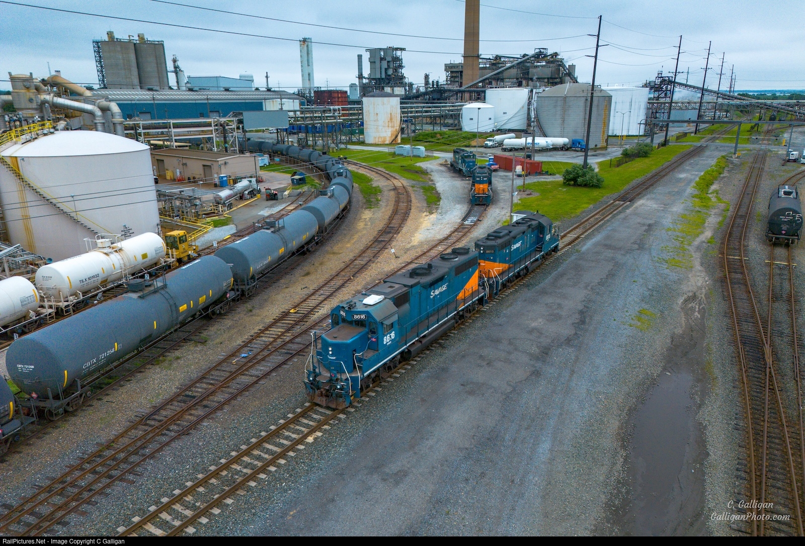 | A couple Savage Industries locomotives sit at the Delaware City Refinery. They act as the onsite railroad servicing a few industrial businesses alongside the Refinery. They also interchange with Norfolk Southern. |