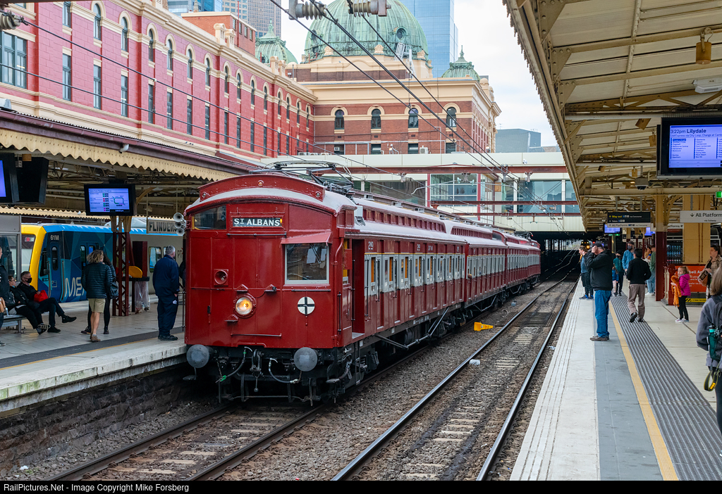 317M-230D-341T-208T-381M with a suburban shuttle special at Flinders Street.