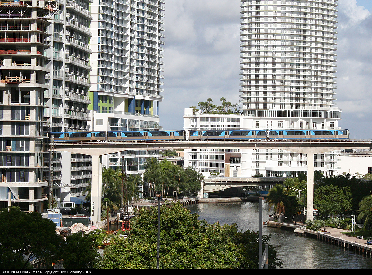 One of the best shots of Metrorail is from the 5th street Metromover station high over the Miami River in the magic city.