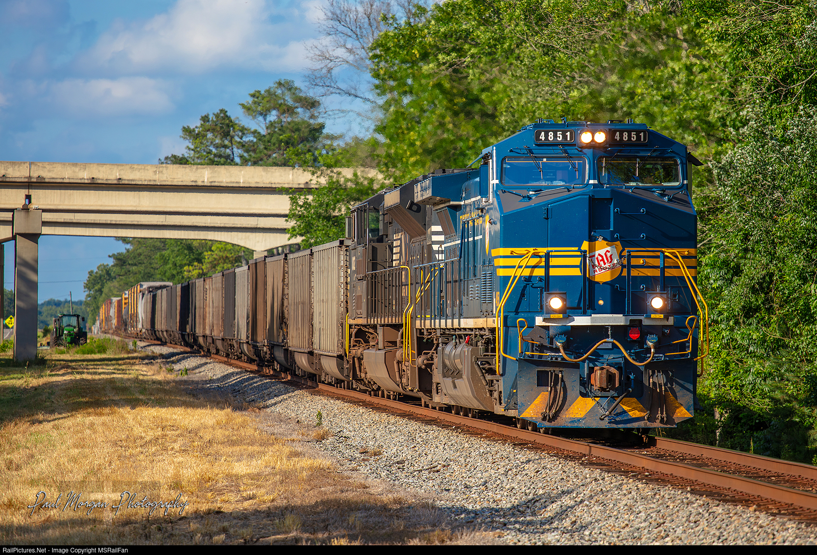 | NS 4851 TAG unit led 15T on the final leg of its trip to Irondale, AL on Father's Day 2025. There's a nice stretch of road just north of Attalla that runs alongside the tracks that made for a nice shot of it going into the sun. |