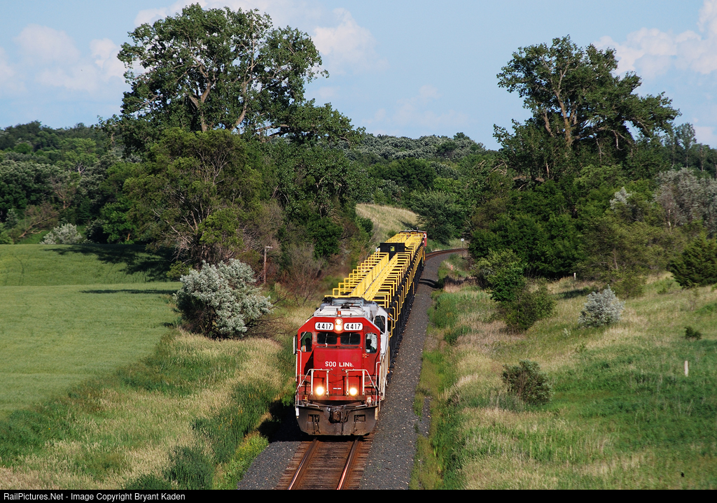 A difference of more than a decade, part 1: back in June 2012, a former Soo Line GP38-2 is in charge of a westbound continuously welded rail train on Canadian Pacific's Elbow Lake Subdivision, seen from the rural overpass between Hoffman and Barrett, MN. The telephoto view allows you to see just a hint of the Soo Line caboose that was also on the rear of the train.
