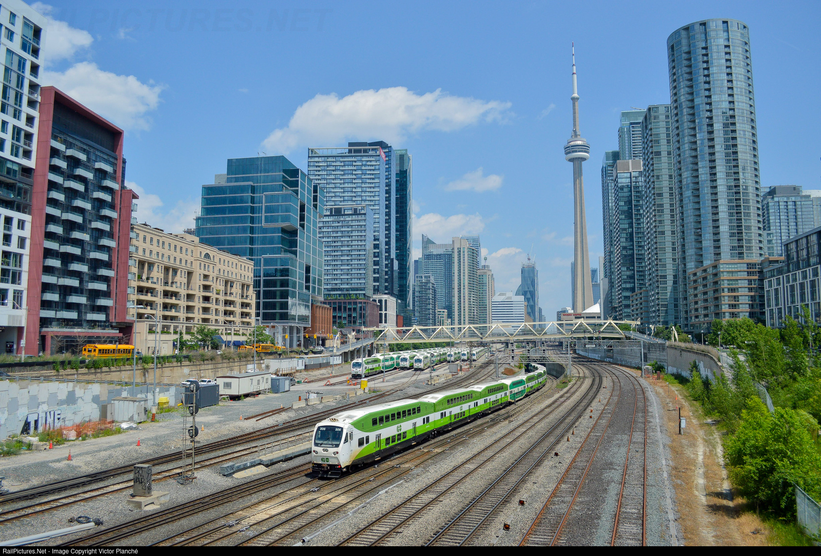 Images that depict rail based public transit in Canada, whether LRT, streetcars, metro, or commuter heavy rail services.