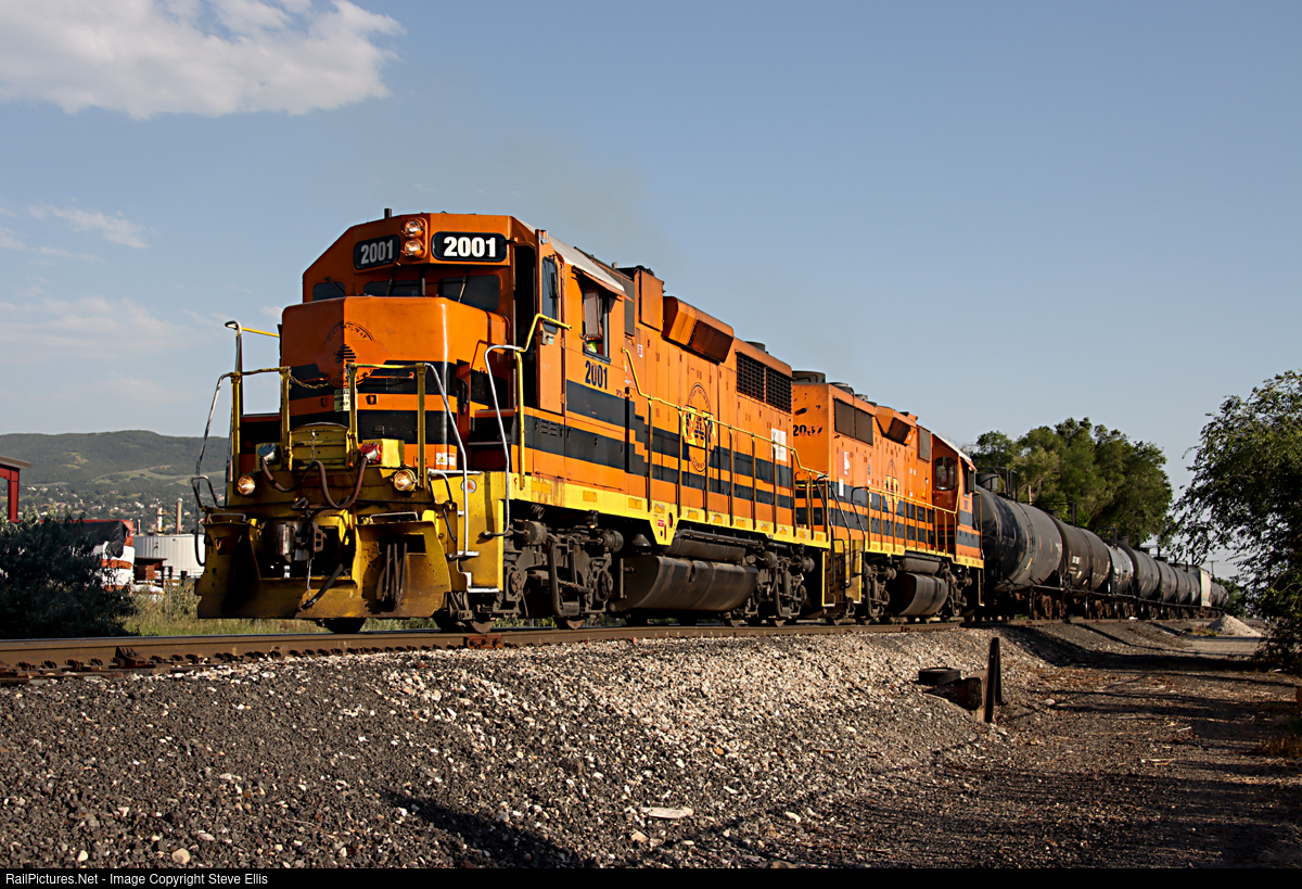 | Utah Railway 2001 once a Rio Grande GP35. Works the Woods Cross Industrial lead. These tracks were once the Rio Grande main to Ogden. So you can say it's on home rails. The dispatcher, and crews call this area SP Woods Cross. |