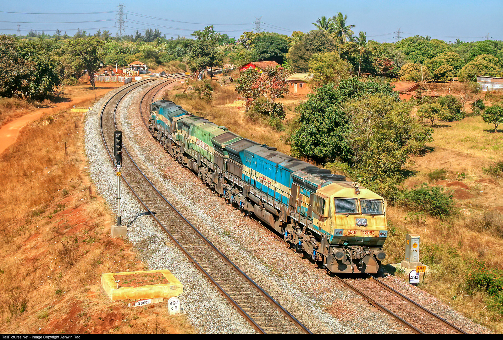 WDG4 triplets headed by #12053 near Dharwad.