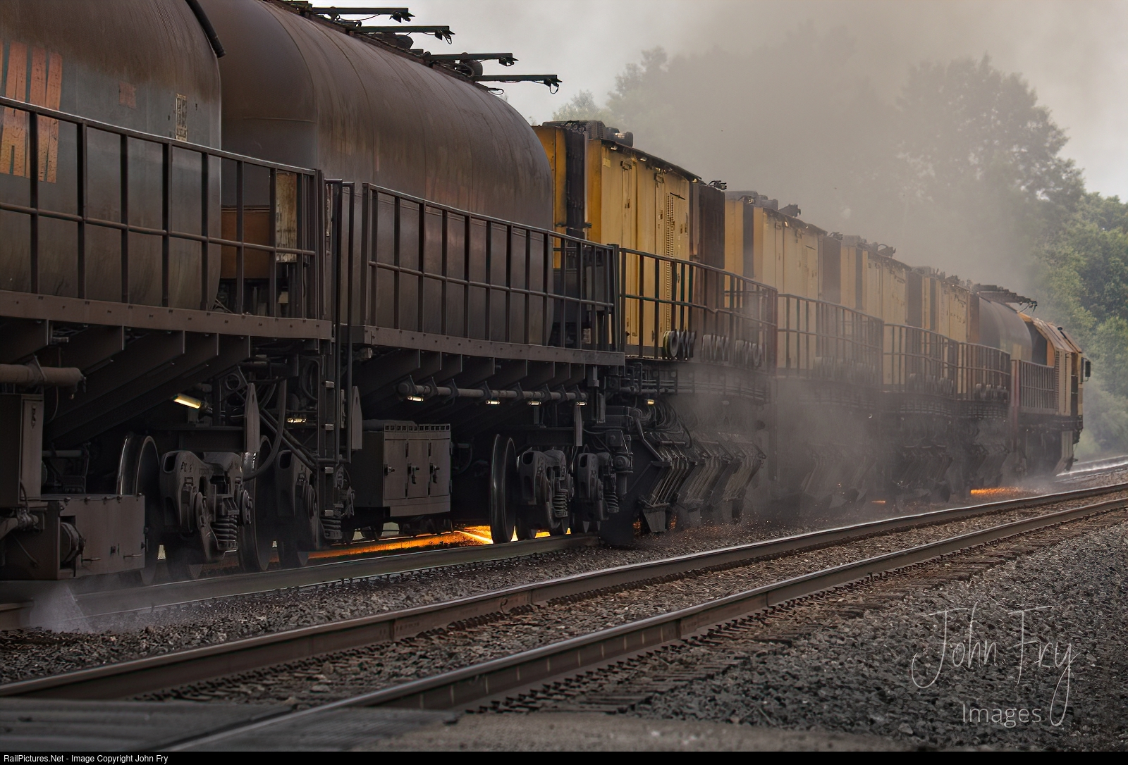 A Loram rail grinder puts on a smoke and fire show while polishing main 2 on the CN in Shaftsburg MI.