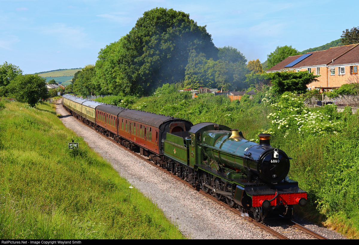 New build steam locomotive No. 6880 Bretton Grange passing Bishops Cleeve.