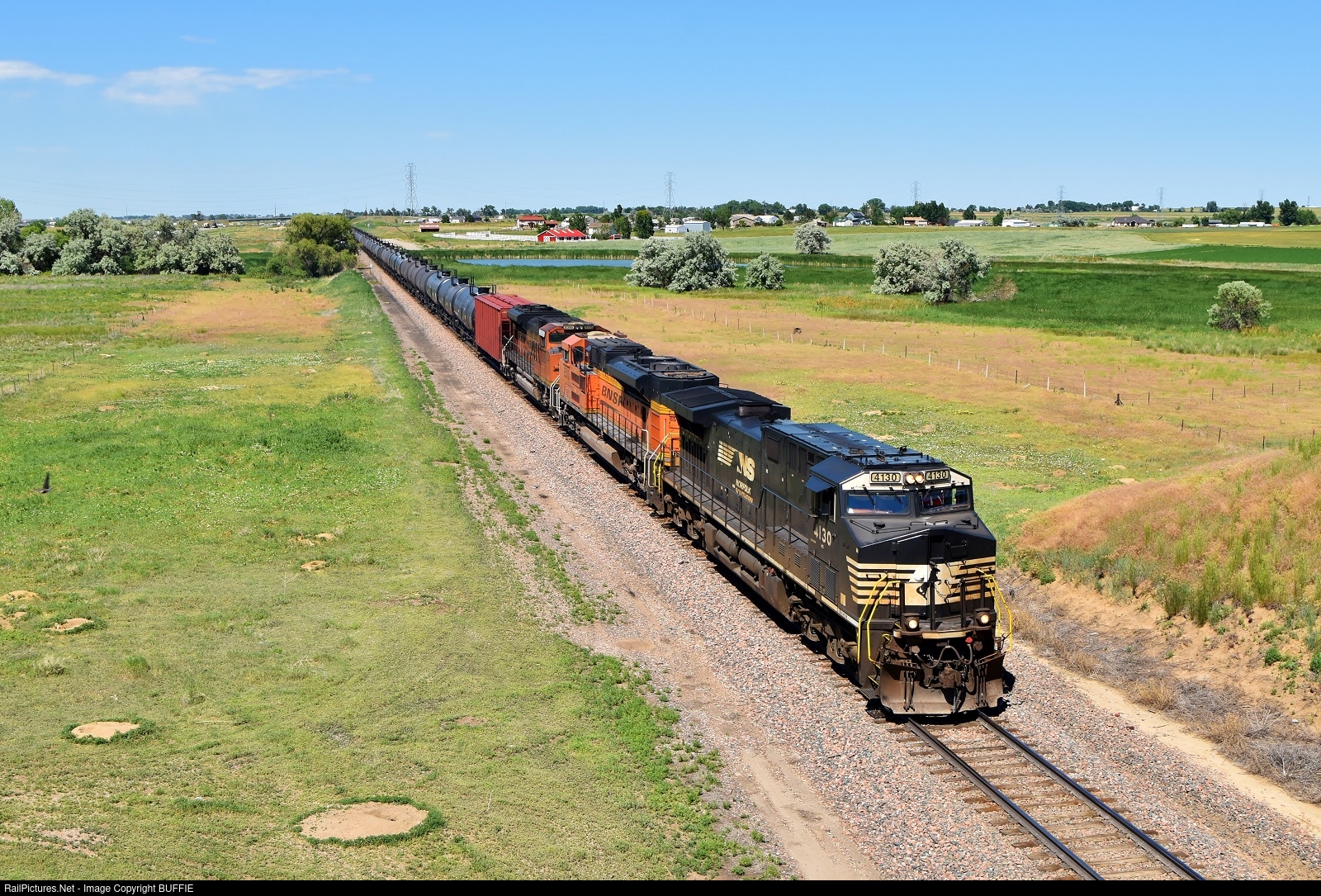 | NS 4130 (AC44C6M) runs a grain train through Tonville, Colorado as it heads towards Denver on the Brush Sub.