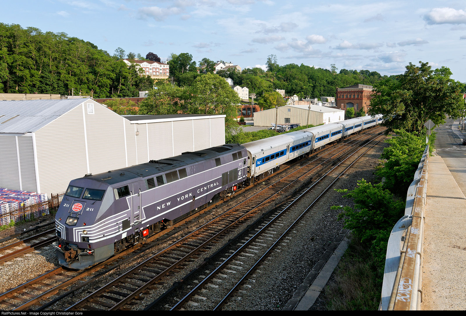 New York Central wrapped P32AC-DM 211 heading north to Poughkeepsie.